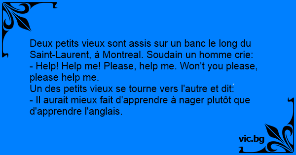 Deux petits vieux sont assis sur un banc le long du Sаinт-Laurent, à Montreal. Soudain un homme crie: