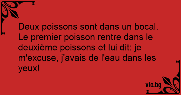 Le premier poisson rentre dans le deuxième poissons et lui dit: je m'excuse, j'avais de l'eau dans les yeux!