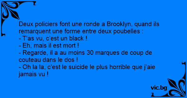 Deux policiers font une ronde a Brooklyn, quand ils remarquent une forme entre deux poubelles :