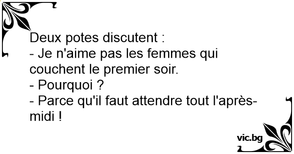 - Je n'aime pas les femmes qui couchent le premier soir.