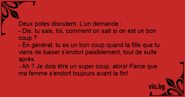 - Dis, tu sais, toi, comment on sait si on est un bon coup ?