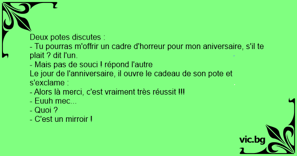 - Tu pourras m'offrir un cadre d'horreur pour mon aniversaire, s'il te plait ? dit l'un.