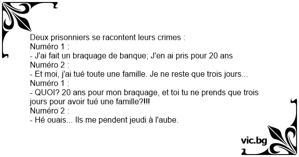 Deux prisonniers se racontent leurs crimes :