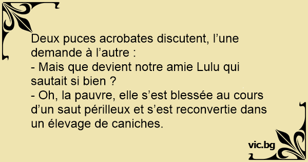 Deux puces acrobates discutent, l’une demande à l’autre :