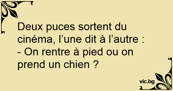 2 pulci escono dal cinema, una pulce dice all'altra: - andiamo a piedi o pigliamo un cane?