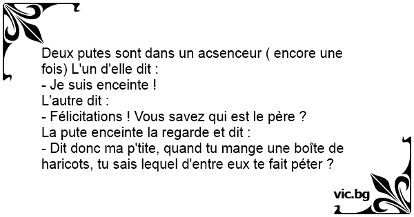 Deux putes sont dans un acsenceur ( encore une fois) L'un d'elle dit :