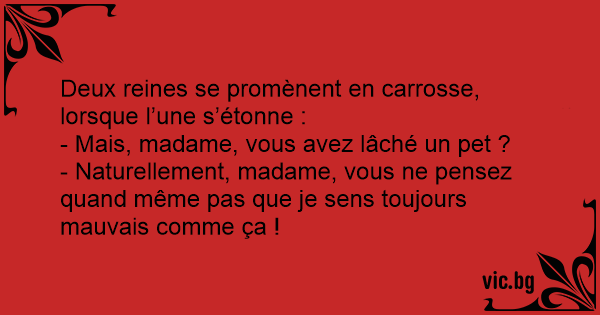 Deux reines se promènent en carrosse, lorsque l’une s’étonne :