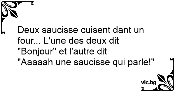 Deux saucisse cuisent dant un four... L'une des deux dit "Bonjour" et l'autre dit