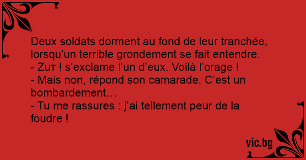Deux soldats dorment au fond de leur tranchée, lorsqu’un terrible grondement se fait entendre.