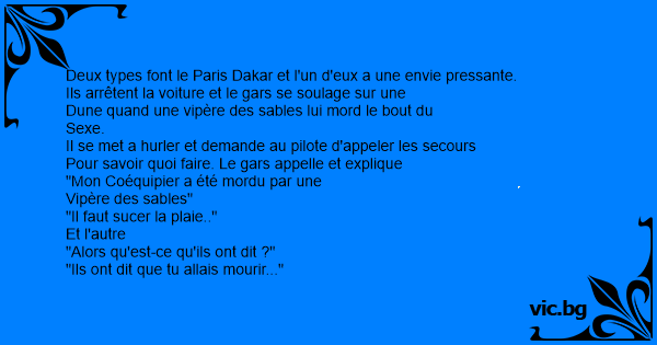 Deux types font le Paris Dakar et l'un d'eux a une envie pressante.