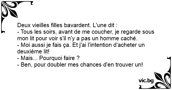 - Tous les soirs, avant de me coucher, je regarde sous mon lit pour voir s'il n'y a pas un homme caché.