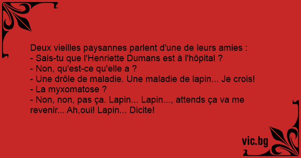 - Une drôle de maladie. Une maladie de lapin... Je crois!