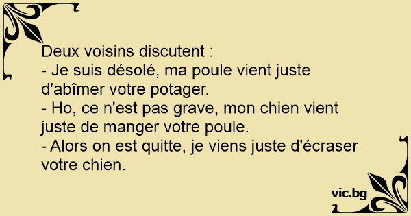 - Но, ce n'est pas grave, mon chien vient juste de manger votre poule.