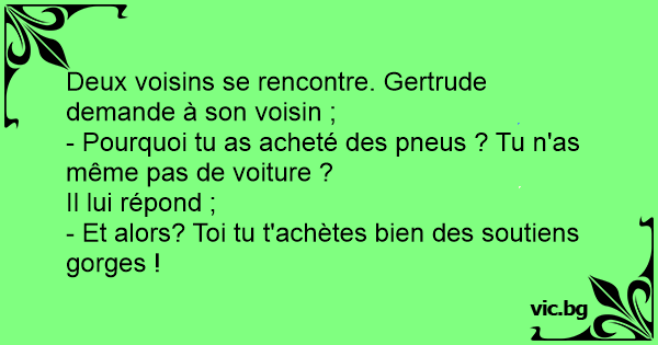 Deux voisins se rencontre. Gertrude demande à son voisin ;