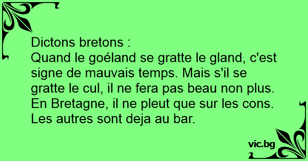 En Bretagne, il ne pleut que sur les cons. Les autres sont deja au bar.