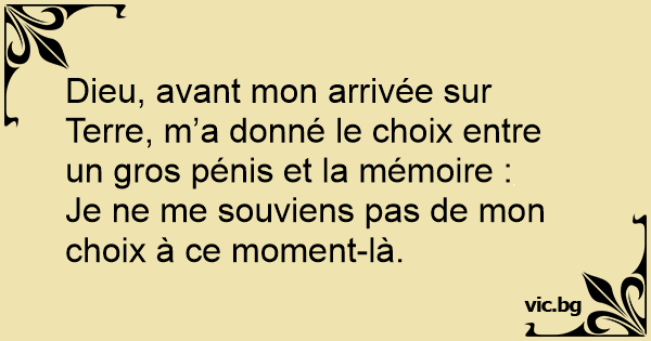 Dieu, avant mon arrivée sur Terre, m’a donné le choix entre un gros pénis et la mémoire :