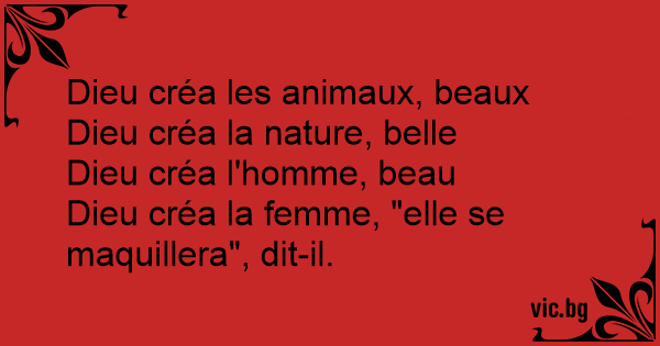 Dieu créa la femme, "elle se maquillera", dit-il.