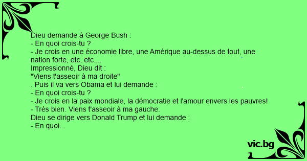 - Je crois en une économie libre, une Amérique au-dessus de tout, une nation forte, etc, etc....