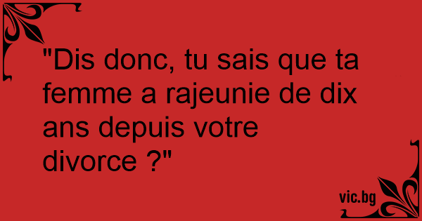 "Dis donc, tu sais que ta femme a rajeunie de dix ans depuis votre divorce ?"