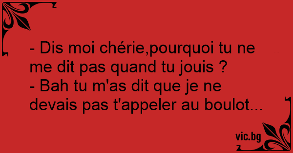- Dis moi chérie,pourquoi tu ne me dit pas quand tu jouis ?