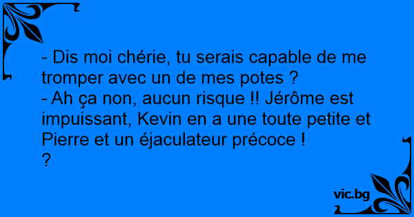 - Dis moi chérie, tu serais capable de me tromper avec un de mes potes ?