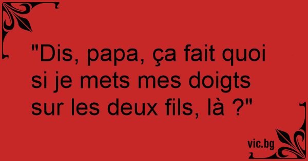 "Dis, papa, ça fait quoi si je mets mes doigts sur les deux fils, là ?"