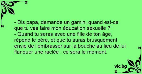 - Dis papa, demande un gamin, quand est-ce que tu vas faire mon éducation sexuelle ?