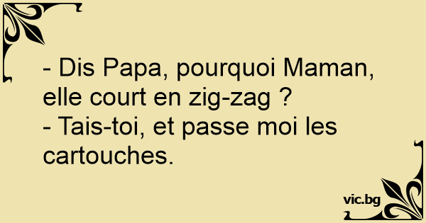 - De ce fuge tata în zig-zag, mamă? - Taci şi mai adu gloanţe!