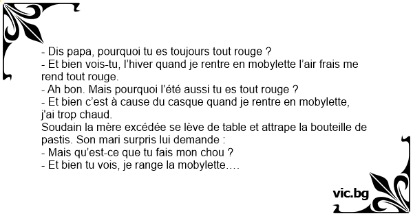 - Et bien vois-tu, l’hiver quand je rentre en mobylette l’air frais me rend tout rouge.