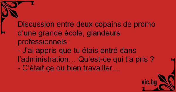 Discussion entre deux copains de promo d’une grande école, glandeurs professionnels :