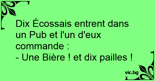 Dix Écossais entrent dans un Pub et l'un d'eux commande :