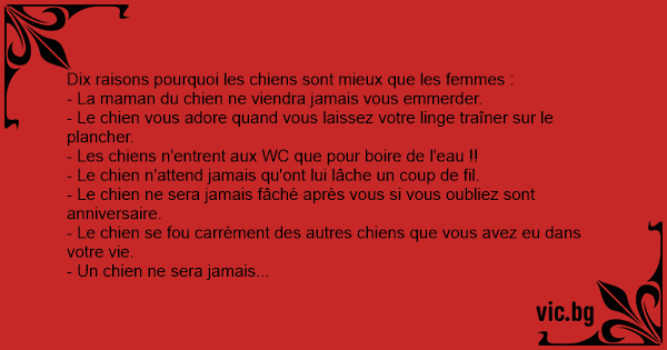 Dix raisons pourquoi les chiens sont mieux que les femmes :