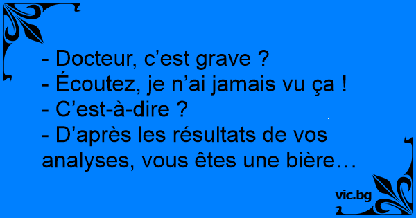 - D’après les résultats de vos analyses, vous êtes une bière…