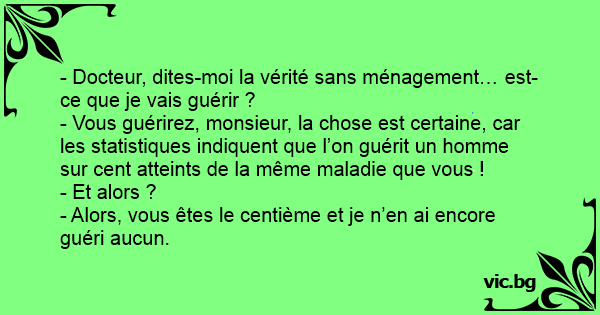 - Docteur, dites-moi la vérité sans ménagement… est-ce que je vais guérir ?