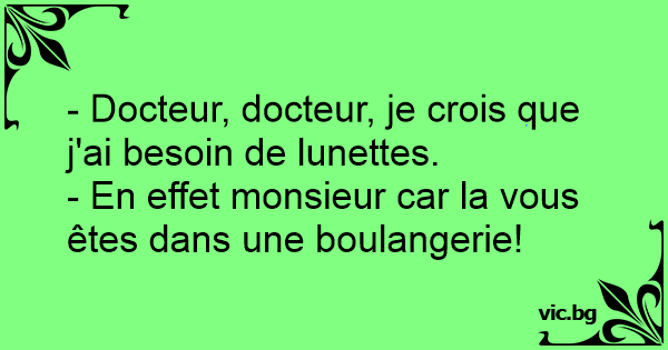 - Docteur, docteur, je crois que j'ai besoin de lunettes.