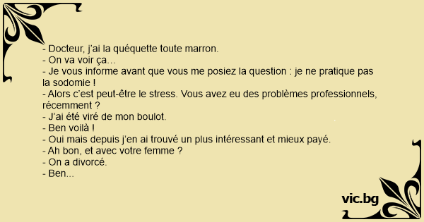 - Docteur, j’ai la quéquette toute marron.