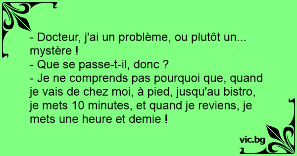 - Je ne comprends pas pourquoi que, quand je vais de chez moi, à pied, jusqu'au bistro, je mets 10 minutes, et quand je reviens, je mets une heure et demie !
