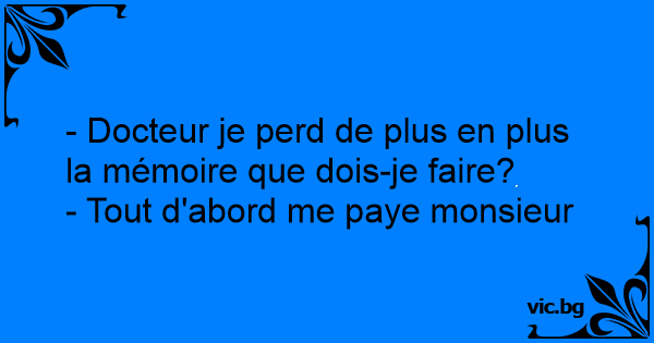 - Docteur je perd de plus en plus la mémoire que dois-je faire?