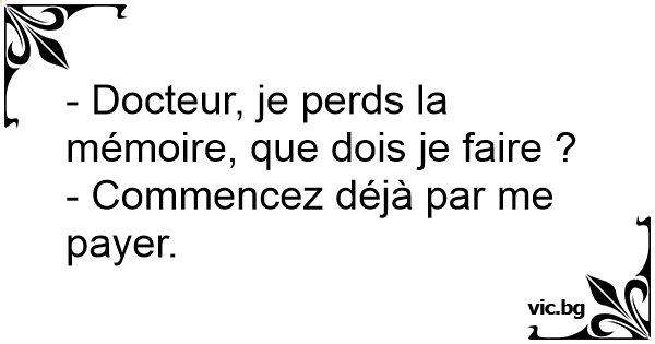 - Docteur je perds la mémoire !! - Ah? Et depuis quand ? - Depuis quand quoi?