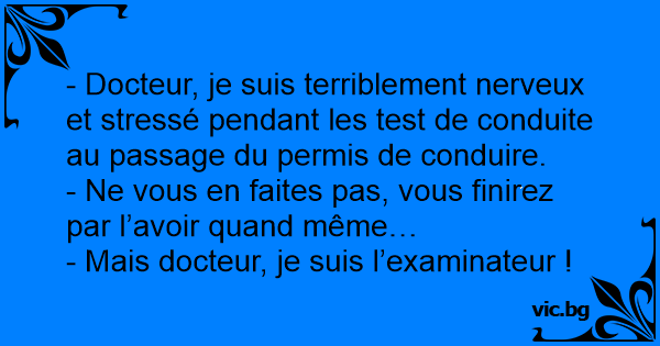 - Docteur, je suis terriblement nerveux et stressé pendant les test de conduite au passage du permis de conduire.