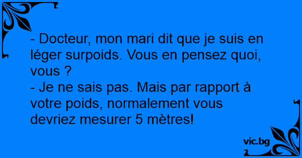 - Docteur, mon mari dit que je suis en léger surpoids. Vous en pensez quoi, vous ?