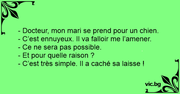 - Docteur, mon mari se prend pour un chien.