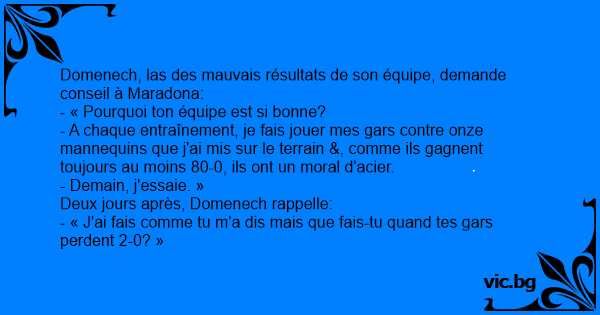 - « J'ai fais comme tu m'a dis mais que fais-tu quand tes gars perdent 2-0? »