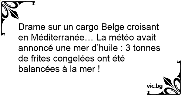 Drame sur un cargo Belge croisant en Méditerranée… La météo avait annoncé une mer d’huile : 3 tonnes de frites congelées ont été balancées à la mer !