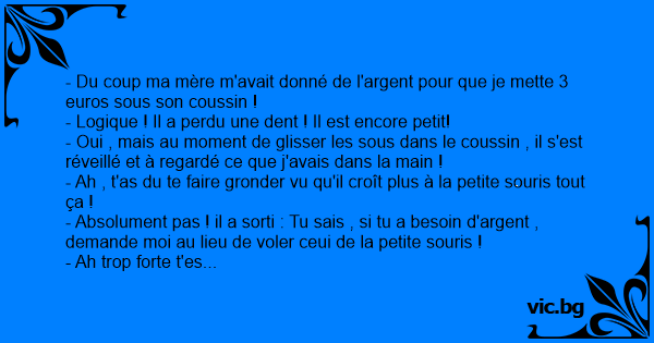 - Du coup ma mère m'avait donné de l'argent pour que je mette 3 euros sous son coussin !