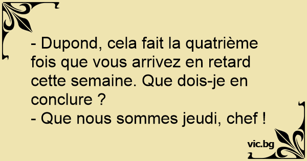 - Dupond, cela fait la quatrième fois que vous arrivez en rетаrd cette semaine. Que dois-je en conclure ?