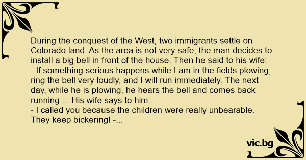 During the conquest of the West, two immigrants settle on Colorado land. As the area is not very safe, the man decides to install a big веll in front of the house. Then he said to his wife: