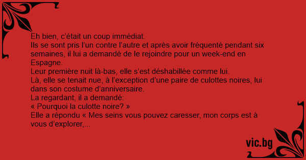 La nuit suivante était la même, elle était là, portant la culotte noire et il était dans son costume d’anniversaire mais maintenant il portait un préservatif noir.