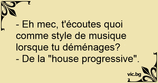 - Eh mec, t'écoutes quoi comme style de musique lorsque tu déménages?