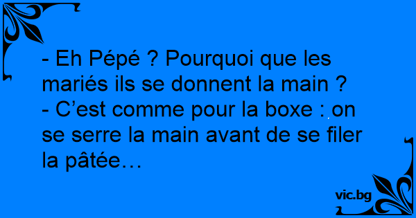 - Eh Pépé ? Pourquoi que les mariés ils se donnent la main ?